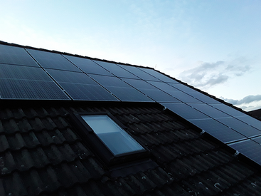 Im Bild sieht man eine Photovoltaikanlage in Gerhardshofen bei Neustadt/Aisch. Der Kunde erhält zudem einen Stromspeicher und eine intelligente Einbindung des grünen Stroms in seine Heizung.