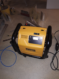 Wir verwenden die Geräte der Firma Rems. Auf den Bilder ist ein REMS Multi-Push SLW mit Kompressor zu erkennen.